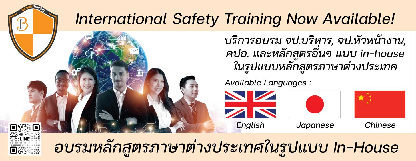 บริการอบรมหลักสูตรด้านความปลอดภัยในการทำงาน (จป.หัวหน้างาน, จป.บริหาร และ คปอ.) ในรูปแบบภาษาต่างประเทศ (ภาษาอังกฤษ, ภาษาจีน และ ภาษาญี่ปุ่น)