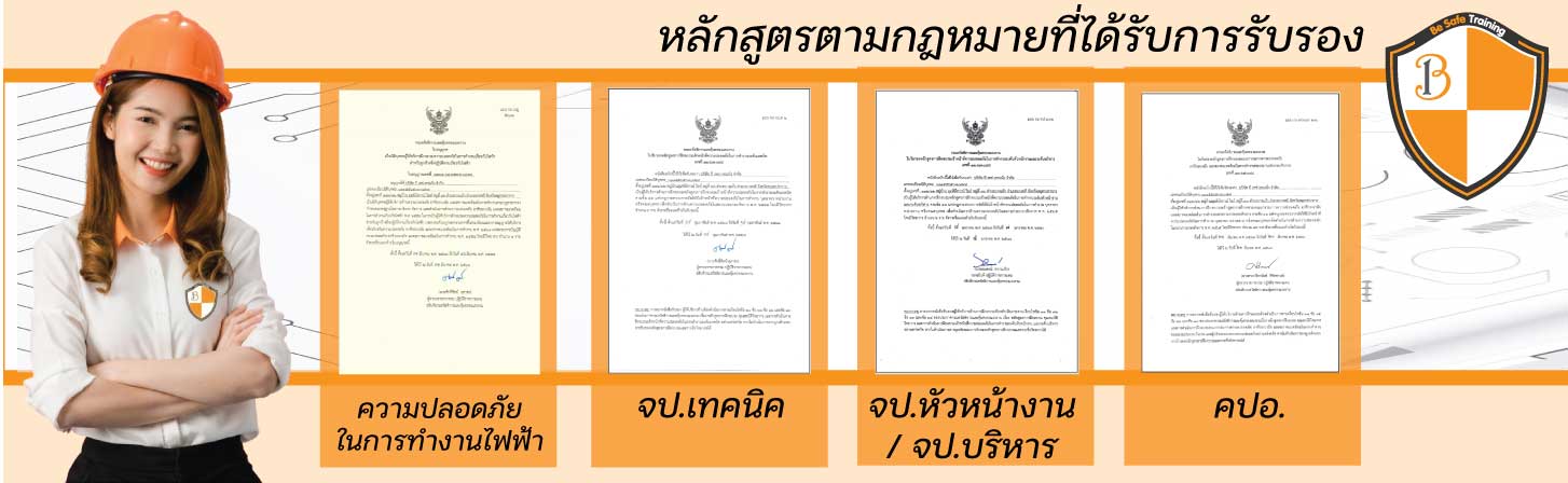เราคือสถาบันฝึกอบรมและให้คำปรึกษาด้านความปลอดภัยในการทำงานที่ได้รับการรับรองมาตรฐาน ISO 9001 : 2015 จาก IGC INTER GLOBALIZATION และได้รับการรับรองเป็นผู้ให้บริการด้านการอบรม จป และการอบรมความปลอดภัยในการทำงานจากกรมสวัสดิการและคุ้มครองแรงงาน กระทรวงแรงงาน เลขที่ใบรับรอง 13-67-098 และผู้ให้บริการฝึกอบรมความปลอดภัยในการทำงานเกี่ยวกับไฟฟ้า ใบอนุญาตเลขที่ 0301-03-2568-0028