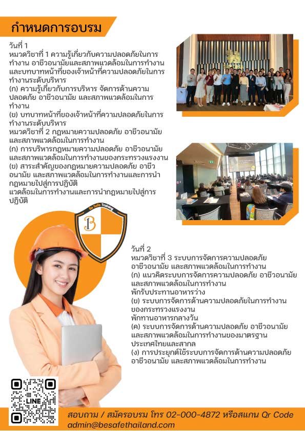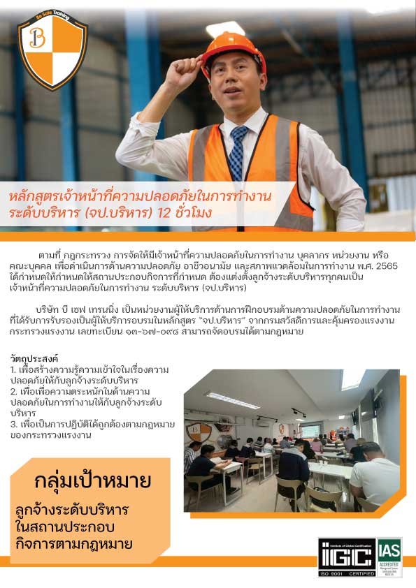 รายละเอียดการอบรม หลักสูตร เจ้าหน้าที่ความปลอดภัยในการทำงาน ระดับบริหาร